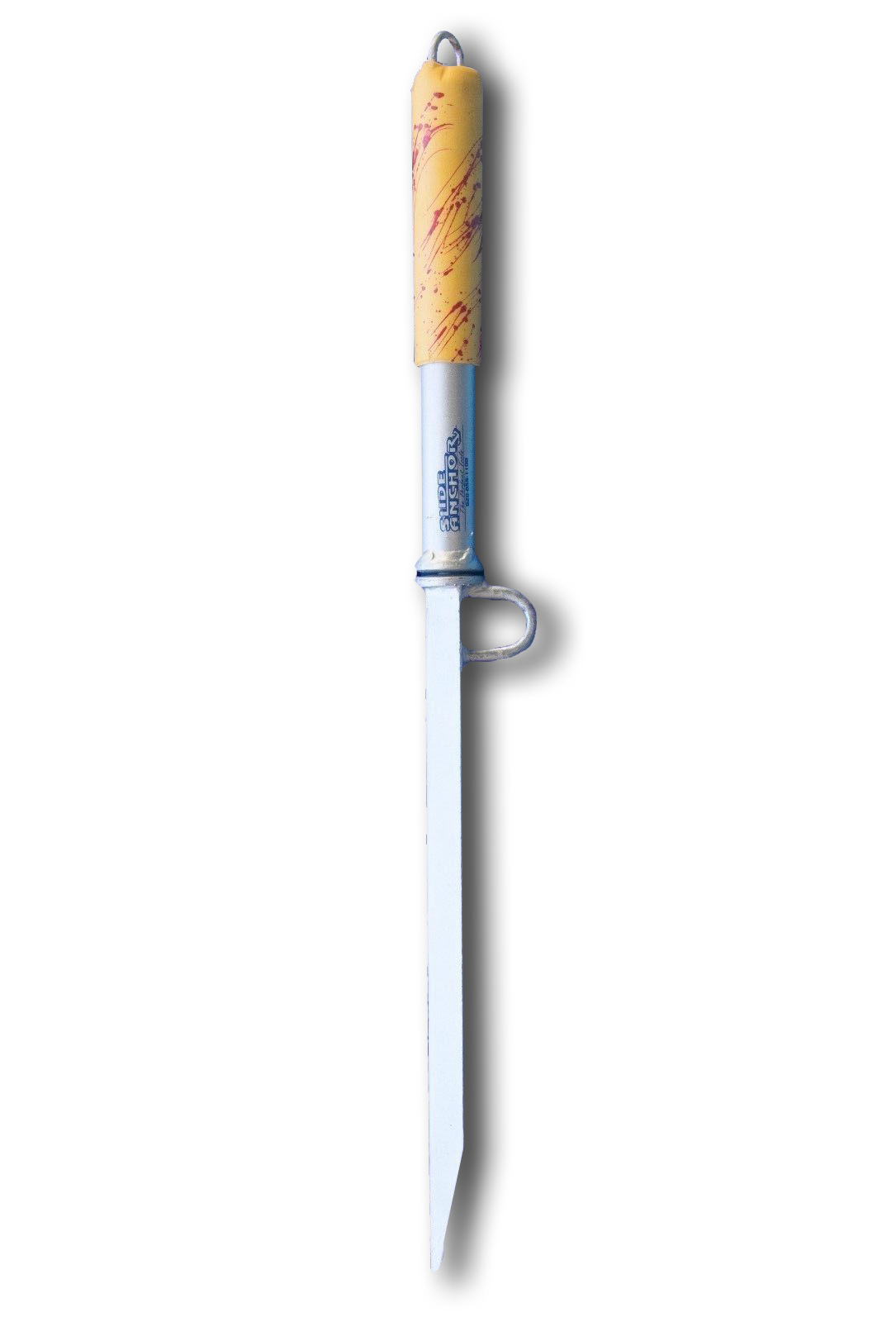 - Drive the Shore Spike’s rubber dipped tubular handle downward to deliver the spike blade into the shoreline, and then tie your boat off to the lower ring!