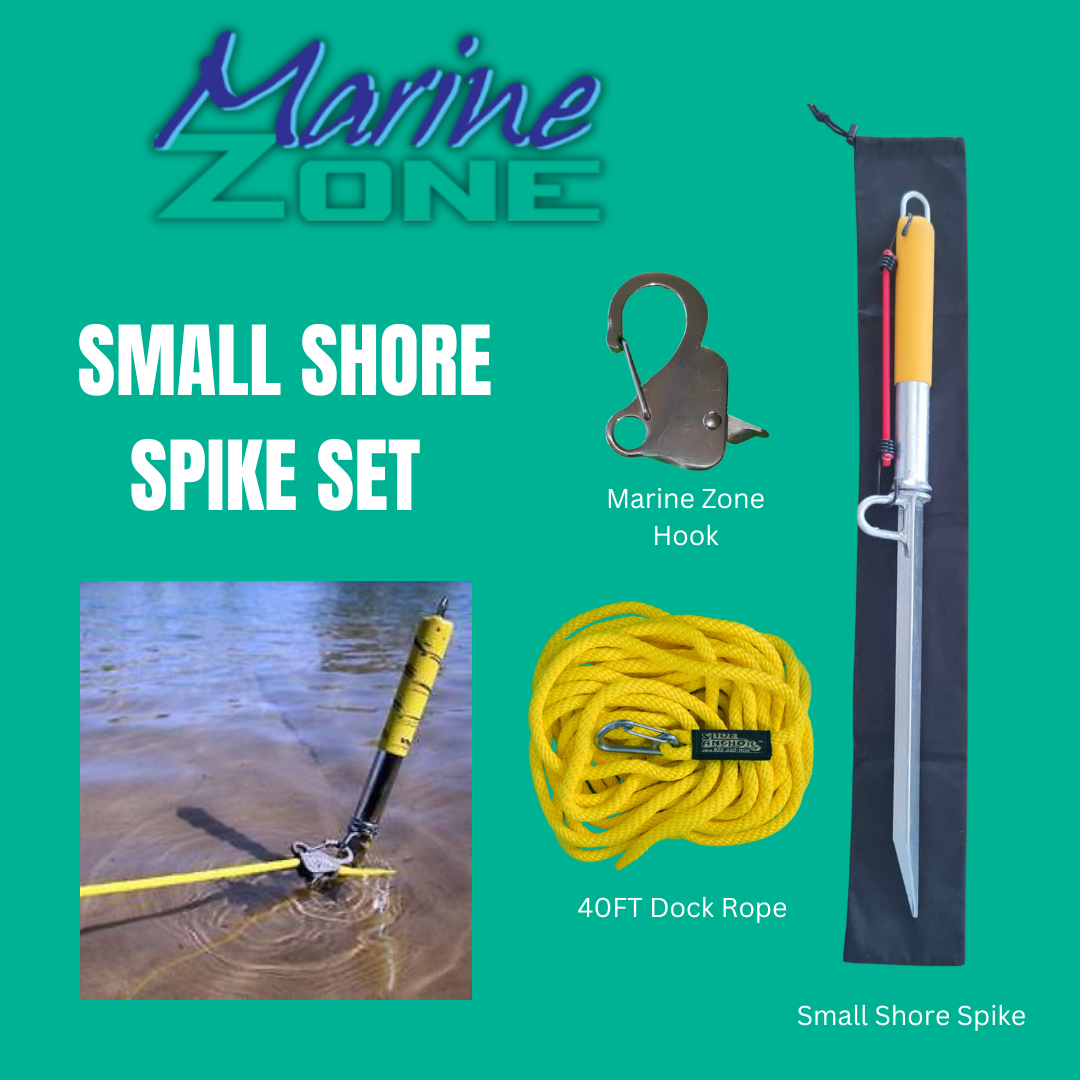 - Drive the Shore Spike’s rubber dipped tubular handle downward to deliver the spike blade into the shoreline, and then tie your boat off to the lower ring!