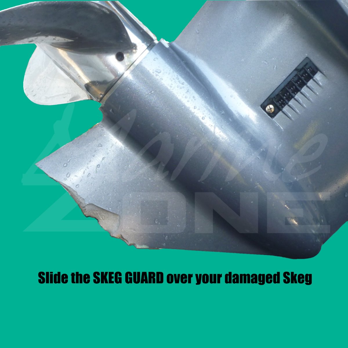 *Simply bolt on SKEGGARD right over your damaged or non damaged Skeg. It is quick, its easy, and its stronger than the original, so it protects your Skeg and Propeller from future damage